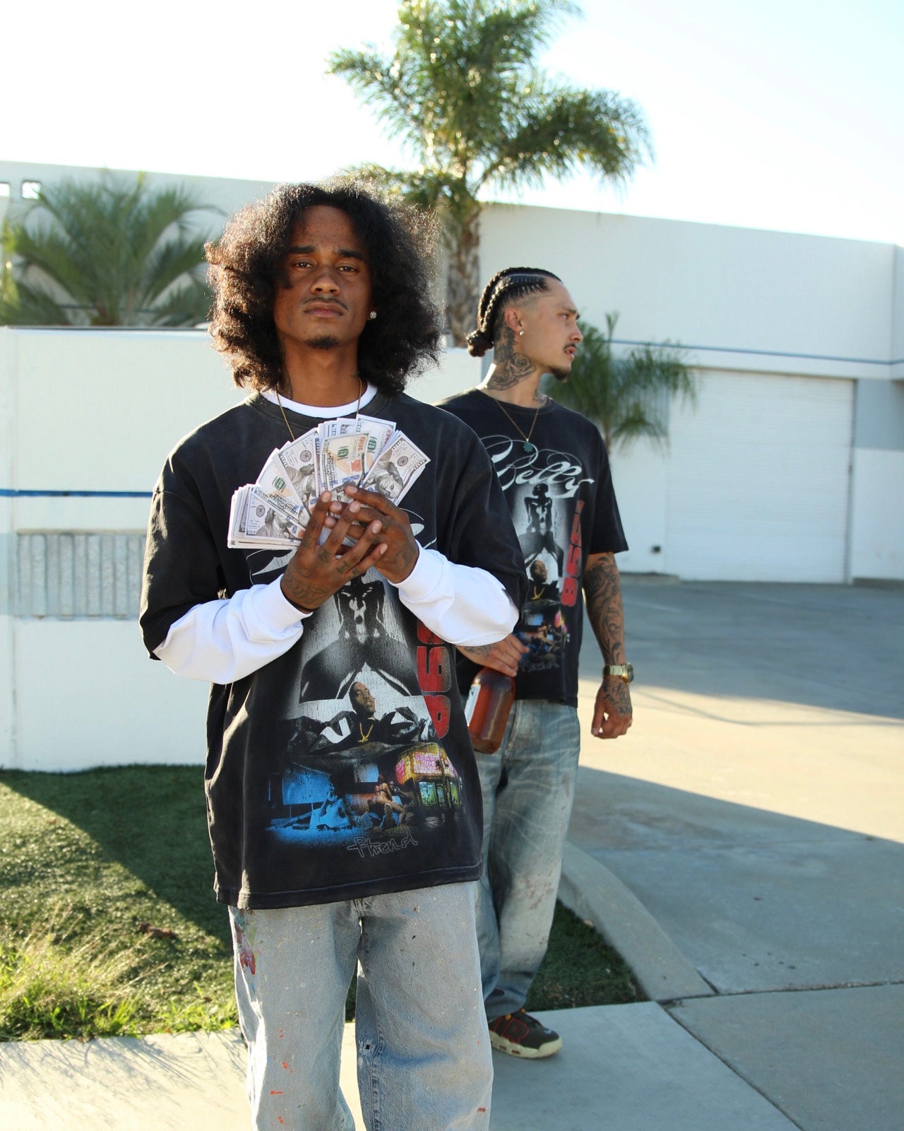 Inspired by the cult classic 1998 Belly, this hand-frayed, vintage-washed tee is for the players, hustlers, and visionaries who move with purpose. This isn’t just a shirt. It’s a nod to timeless style, street culture, and the art of storytelling through film.